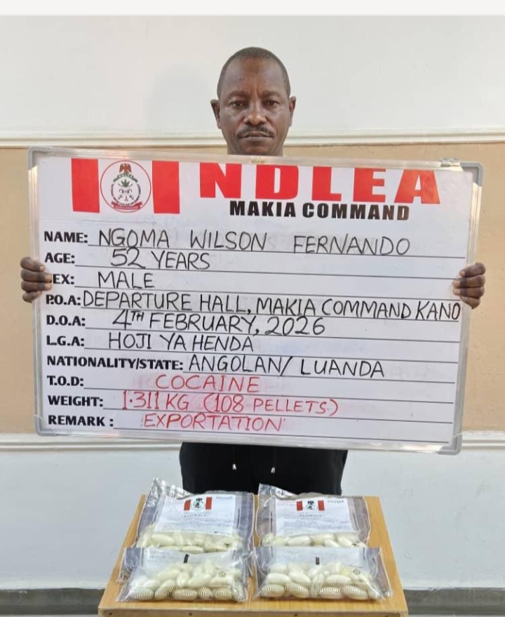 A China-based Nigerian businessman, Ibeanu Vincent Chukwudulue and two Angolan citizens: Mbandu Martins Makiadi and Ngoma Wilson Fernando have excreted a total of 236 wraps of cocaine following their arrest by operatives of the National Drug Law Enforcement Agency (NDLEA) at the Nnamdi Azikiwe International Airport Abuja and Mallam Aminu Kano International Airport, Kano, respectively.